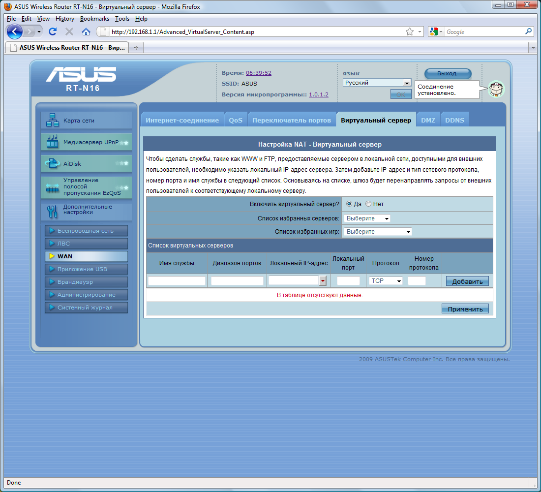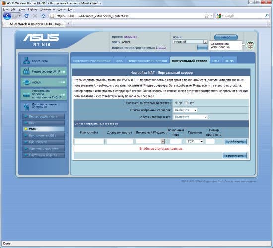 Роутер поддерживает DDNS для нескольких популярных сервисов, а также фирменной аналогичной услуги от ASUS.