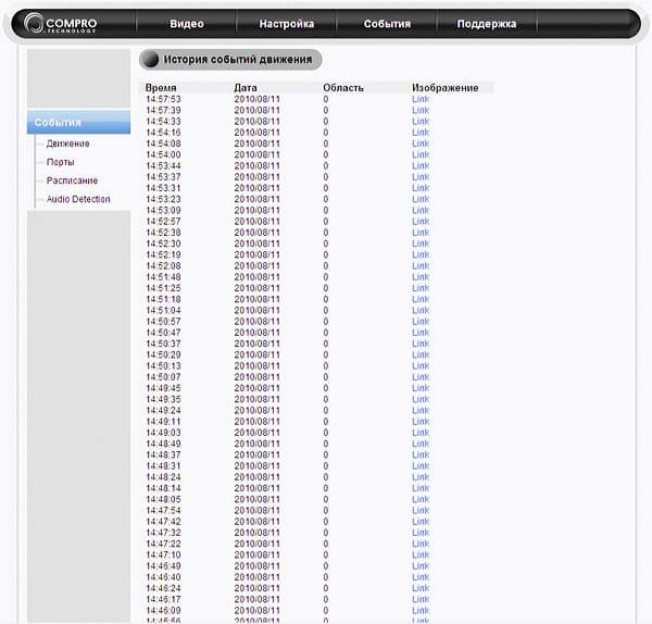 Вот только через web-интерфейс доступ ограничен лишь сотней последних записей, а более ранние перестают отображатся в списке событий и доступны лишь при чтении карты в картоводе. К тому же, если выключить питание камеры, то при следующем запуске web-интерфейса в списке событий будут лишь те из них, которые сформированы с начала текущей сессии; результат регистрации более ранних, опять же, можно увидеть только с помощью картовода.