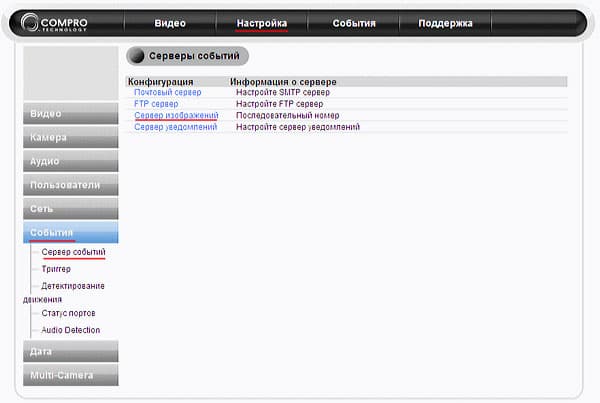 Далее: «Настройка» → «События» → «Сервер событий» → «Сервер изображений»: