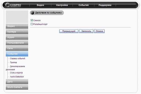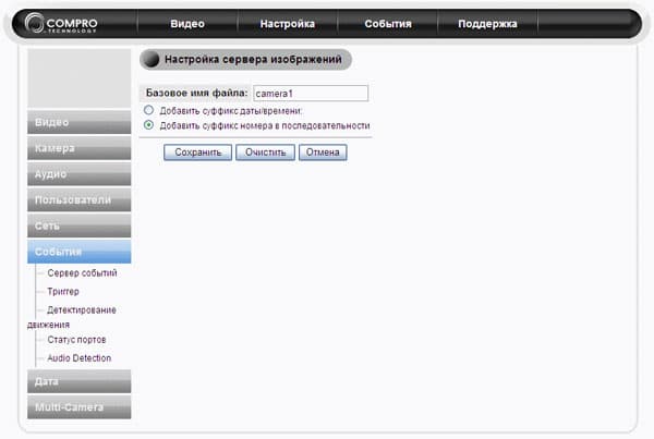 А вот работа с microSD-картами памяти, для подключения которых есть слот на левой боковой поверхности камеры, в текущей реализации оставляет желать значительно лучшего, находясь на зачаточном уровне. Прежде всего, явных указаний на использование таких носителей нет ни в инструкциях, ни в меню настроек как web-интерфейса, так и программы ComproView; пришлось обращаться к сотрудникам фирмы-изготовителя, которые подсказали возможный путь задействования SD-карт для сохранения отдельных кадров (конечно, кое-что пришлось додумывать самим).