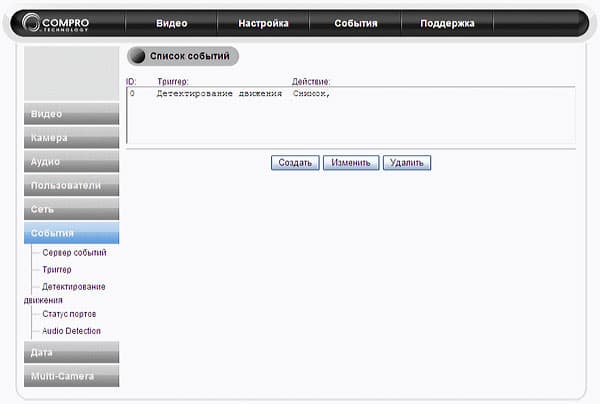 Вот, собственно, и всё; теперь можно посмотреть, что получилось. Выбираем «События» в верхнем меню и получаем список событий, зафиксированных на нашу SD-карту в виде кадров.