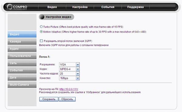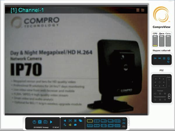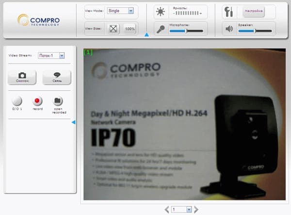 Не удастся и оперативно отрегулировать яркость изображения — ComproView не дает такой возможности; регулировать яркость можно только через web-интерфейс, а сделанные при этом изменения воздействуют и на картинку, которую отображает ComproView.