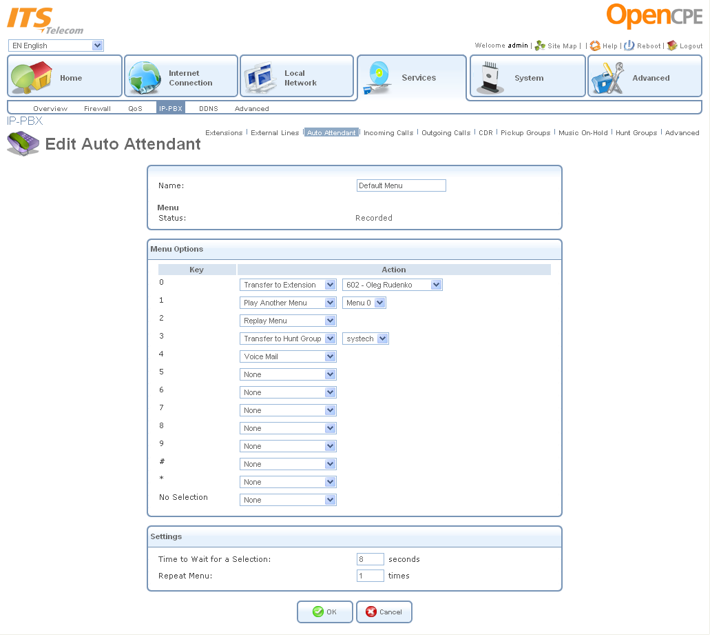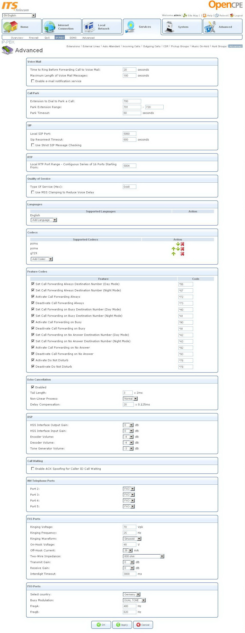 - Встроенная голосовая почта, автосекретарь, фоновая музыка при ожидании соединения и удержании, пользовательские услуги перевод вызова на мобильный телефон, функции «не беспокоить» и т.д.;