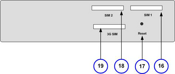 - 16 Слот для установки SIM-карты GSM-линии №1;