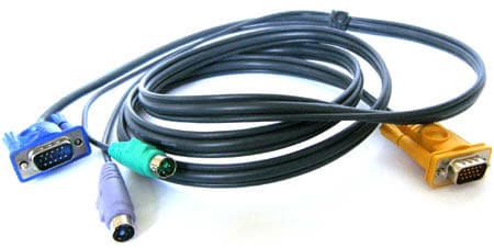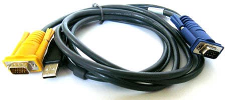 - кабели для подключения системных блоков доступны для заказа длиной 1,2, 1,8, 3, и 6 метров с интерфейсом PS/2 и 1,8, 3, и 6 метров с интерфейсом USB, для объединения в цепь длиной 0,6, 1,8, 3 и 5 метров;