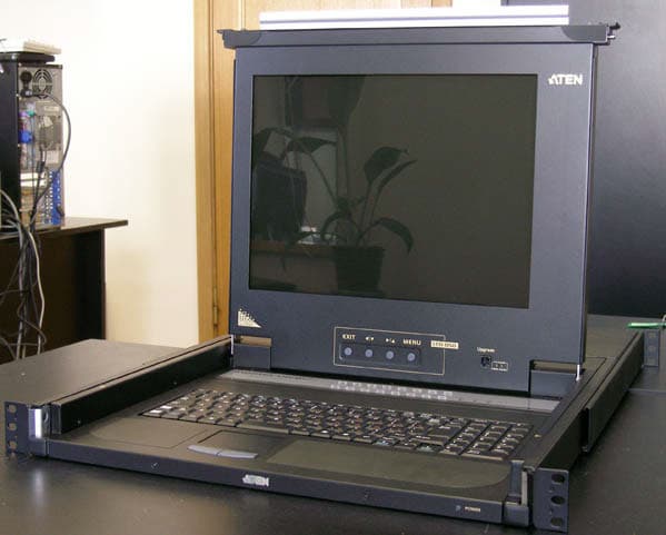 Порт для внешней консоли очень удобен для удалённого контроля серверов — наряду с управлением непосредственно в шкафу возможен вынос второй консоли на значительное расстояние на рабочее место системного администратора. Либо по витой паре, например, с использованием CE-252, либо по IP сети, при помощи, скажем, CN-6000. А если задействовать дополнительные переключатели консоли, то можно создавать и более сложные инсталляции.