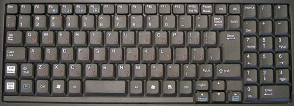Клавиши плоские, полноразмерные, ход нажатия короткий, менее 2 мм. Нажатие мягкое, информативное, звук тихий. Механизм возврата клавиш модифицированный купольный, крепление каждой клавиши на металлическую рамку из двух половинок. Дрягаются клавиши совсем немного, даже длинные. Все полноразмерные, кроме бо́льшей части верхнего ряда и курсорного блока, эти на треть уменьшены в высоту. Русские буквы тёмно-красные, что мало кому нравится. Основные символы белые, семь Fn светло-голубые. Вся маркировка выполнена запрессовкой цветных кусочков пластика, практически вечная.