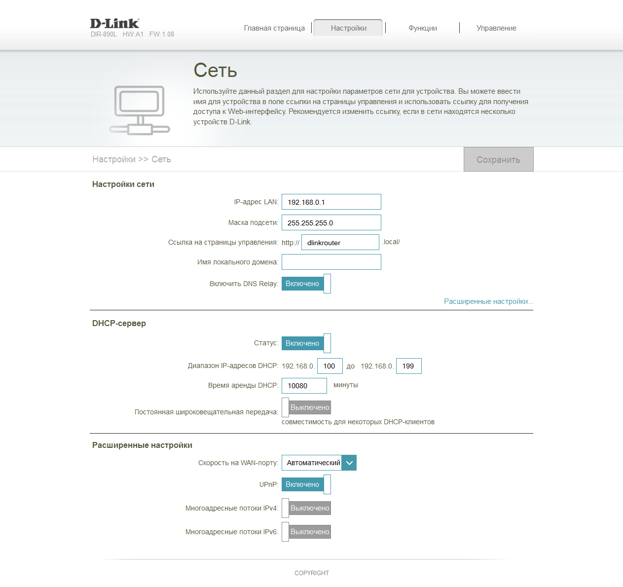 Для настройки устройства используется традиционный веб-интерфейс. Параметры доступа к нему указаны на наклейке, расположенной на нижней части корпуса. При первом включении или после сброса настроек предлагается использовать помощник для установки основных параметров работы, включая данные подключения к провайдеру, Wi-Fi, пароль и подключение к сервису mydlink. Интерфейс защищен паролем, есть возможность использования HTTPS, внешний доступ по пользовательскому номеру порта и перевод на несколько языков, включая русский. А вот встроенной справочной системы мы не нашли.