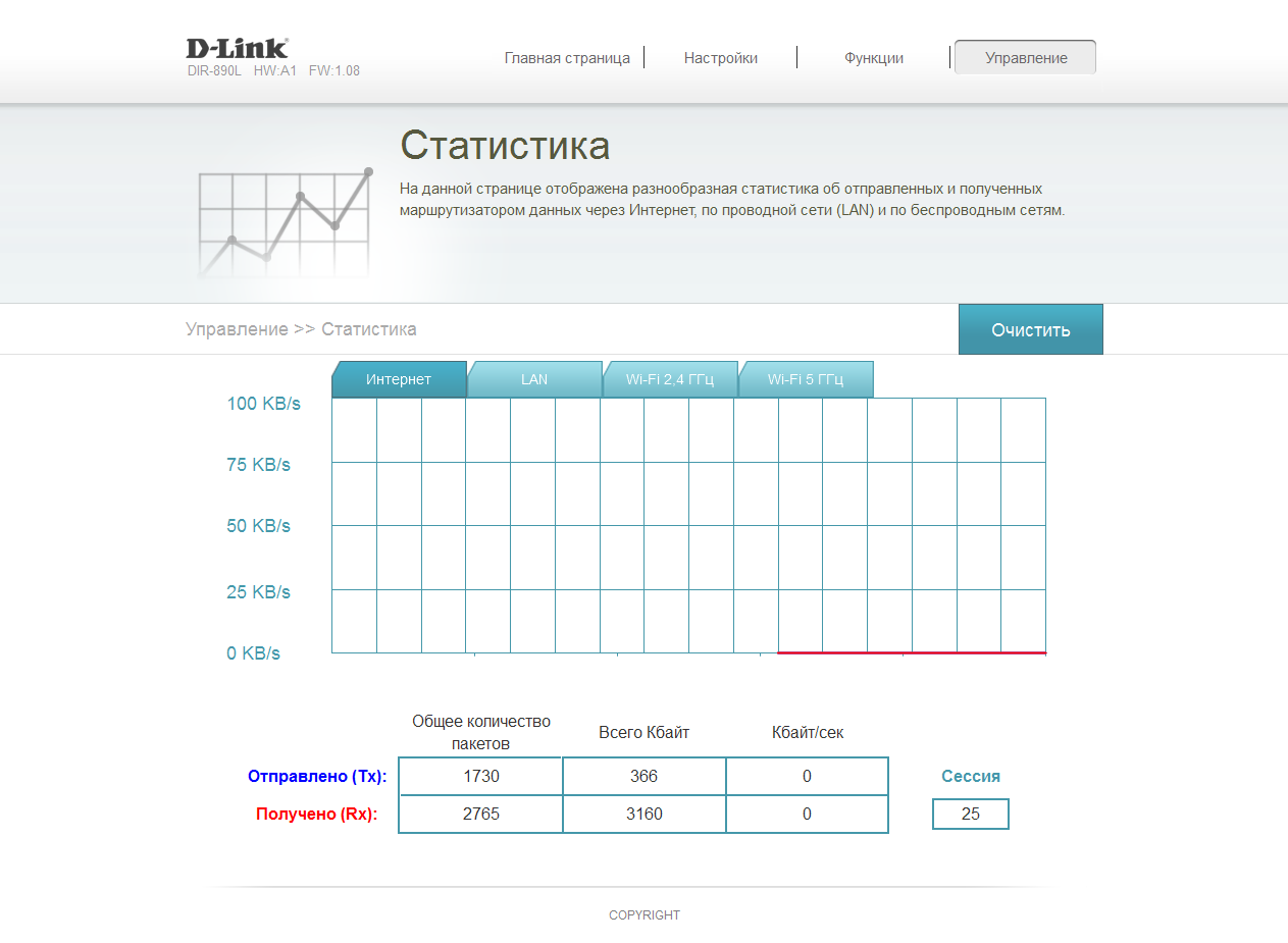 Последняя страница в этом разделе позволяет проконтролировать текущие скорости по интерфейсам, а также объемы принятого и переданного по ним трафика. К сожалению, здесь нет никакого деления по клиентам или датам.