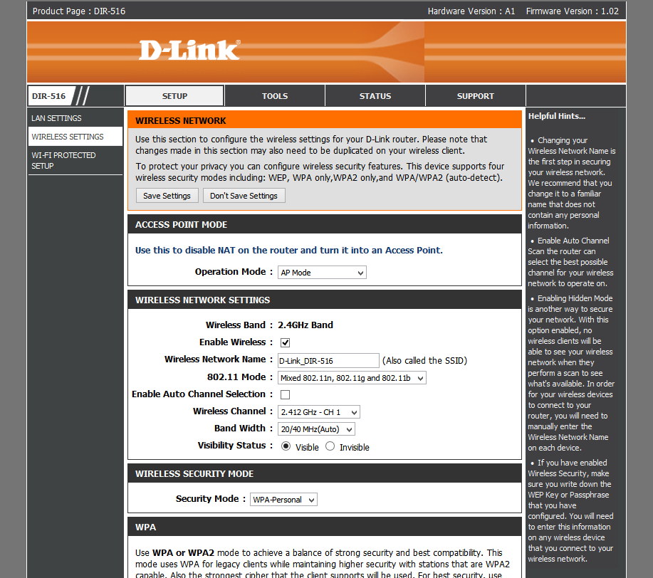 Кроме того, для домашнего пользователя может быть интересно создание дополнительной точки доступа, в том числе и с поддержкой 802.11ac, работающей в пределах комнаты, а также подключение к беспроводной сети не имеющих соответствующего адаптера устройств. Более популярным сценарием для данной модели представляется мобильная работа в гостиницах, на выставках или мероприятиях. Компактные размеры устройства и его антенн не позволяют говорить о большой зоне покрытия и возможности работы через стены, но для комнаты или выставочного стенда D-Link DIR-516 будет вполне достаточно.