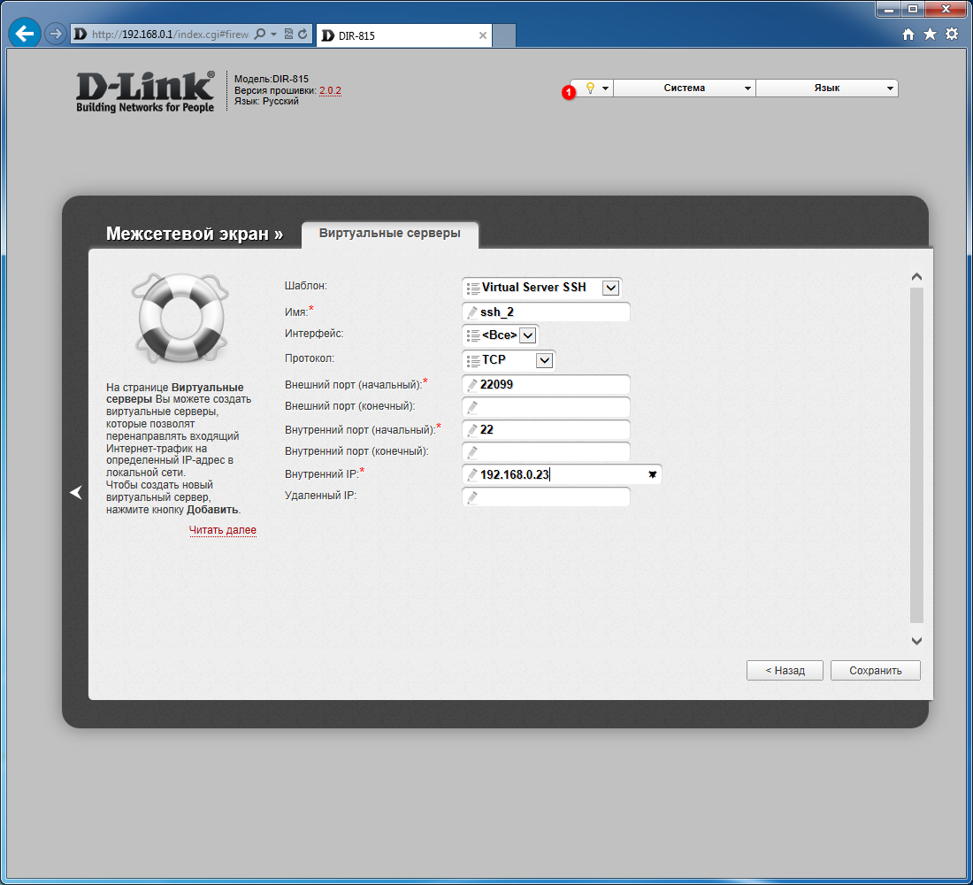 Кроме работы через UPnP, пользователь может самостоятельно назначить правила трансляции портов для обеспечения работы требуемых сетевых сервисов. Поддерживается указание одиночных портов и диапазонов, а также использование разных внешних и внутренних портов.