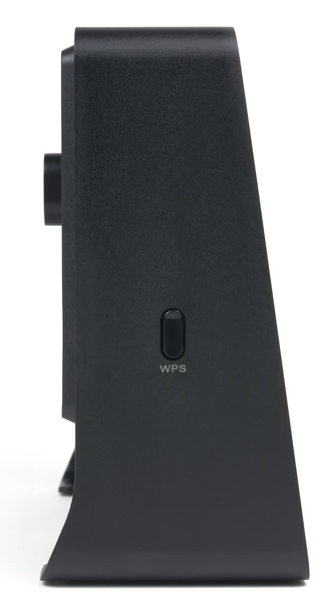 В верхней части передней панели находятся не очень яркие индикаторы зеленого цвета: питание, WPS, Интернет, Wi-Fi (отдельно для 2,4 и 5 ГГц), LAN1—LAN4. Для сетевых интерфейсов они показывают как подключение, так и активность портов. На правом торце можно заметить кнопку WPS для удобного подключения беспроводных клиентов. В небольшой нише сзади установлены разъемы для сетевых кабелей, скрытая кнопка сброса, вход для блока питания и выключатель.