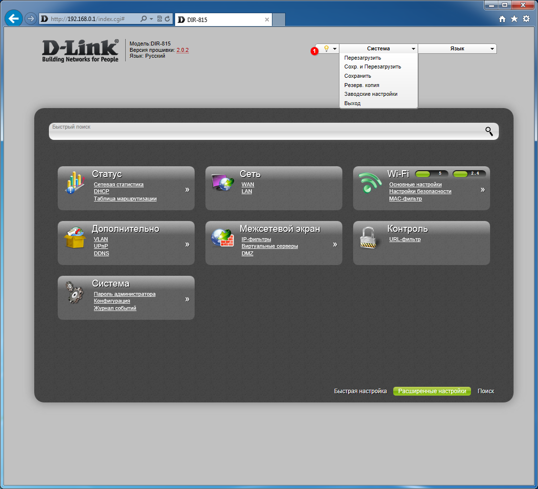 На момент тестирования обновлений прошивок для данной модели не было, так что использовалась заводская версия 2.0.2. Отметим, что роутер имеет встроенный механизм поиска новых версий на сайте производителя.