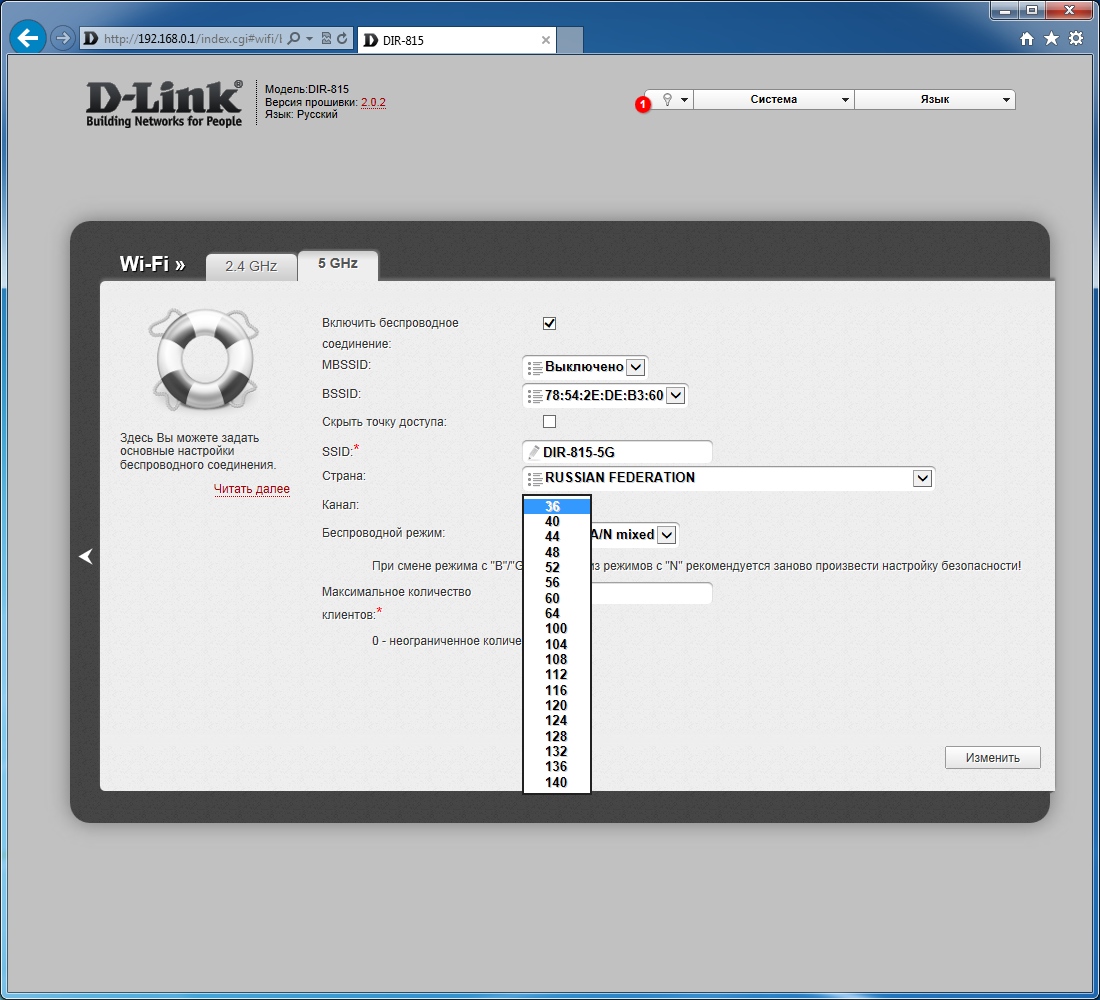 На значке Wi-Fi производитель разместил независимые выключатели беспроводных интерфейсов, что достаточно удобно. Большинство опций этого раздела дублируется для диапазонов 2,4 и 5 ГГц. Базовые настройки традиционны: выбор региона, имени сети, режима работы, номера и ширины канала, режима безопасности (открытая сеть, WPA/WPA2 с паролем или сервером RADIUS). Интересно, что для 5 ГГц предлагается очень большой список каналов: 36-64, 100-140. Правда попытка выбора нестандартных значений часто не приводила к результату, а беспроводный модуль мог и самостоятельно «перескочить» на другой канал несмотря на практически полное отсутствие других сетей в этом диапазоне. Отдельной страницы со статусом Wi-Fi сетей здесь не предусмотрено, что затрудняет анализ работы этого блока.