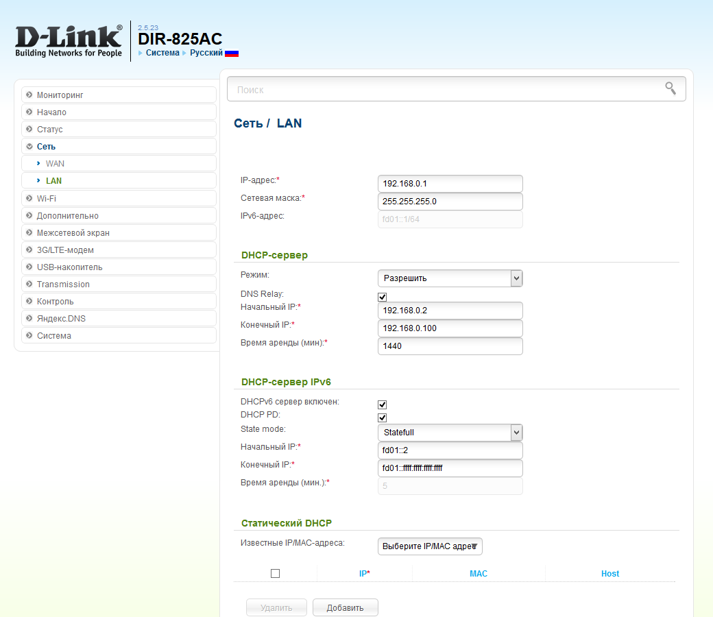 В локальной сети все традиционно — можно изменить собственный адрес роутера, указать параметры сервера DHCP и зарезервировать для клиентов фиксированные адреса, добавить собственные записи в таблицу маршрутизации.