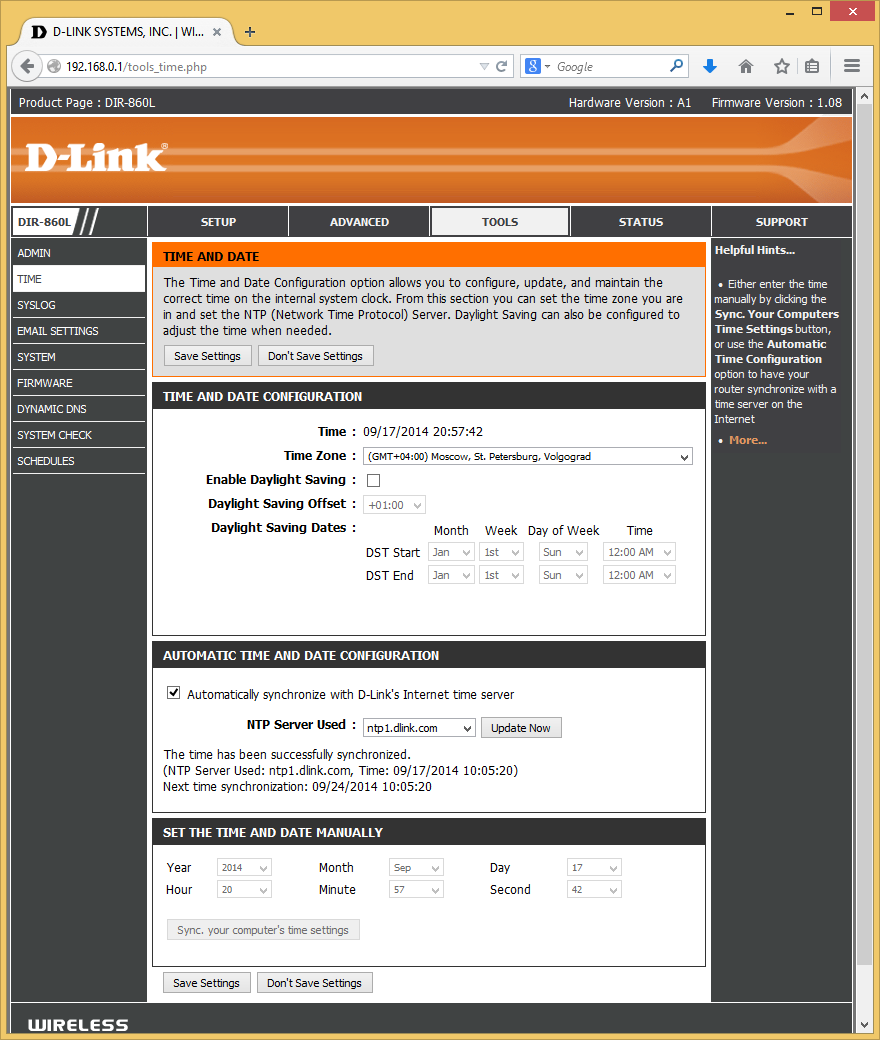 Для корректной работы системы есть возможность настройки встроенных часов, которые поддерживают и синхронизацию по протоколу NTP.