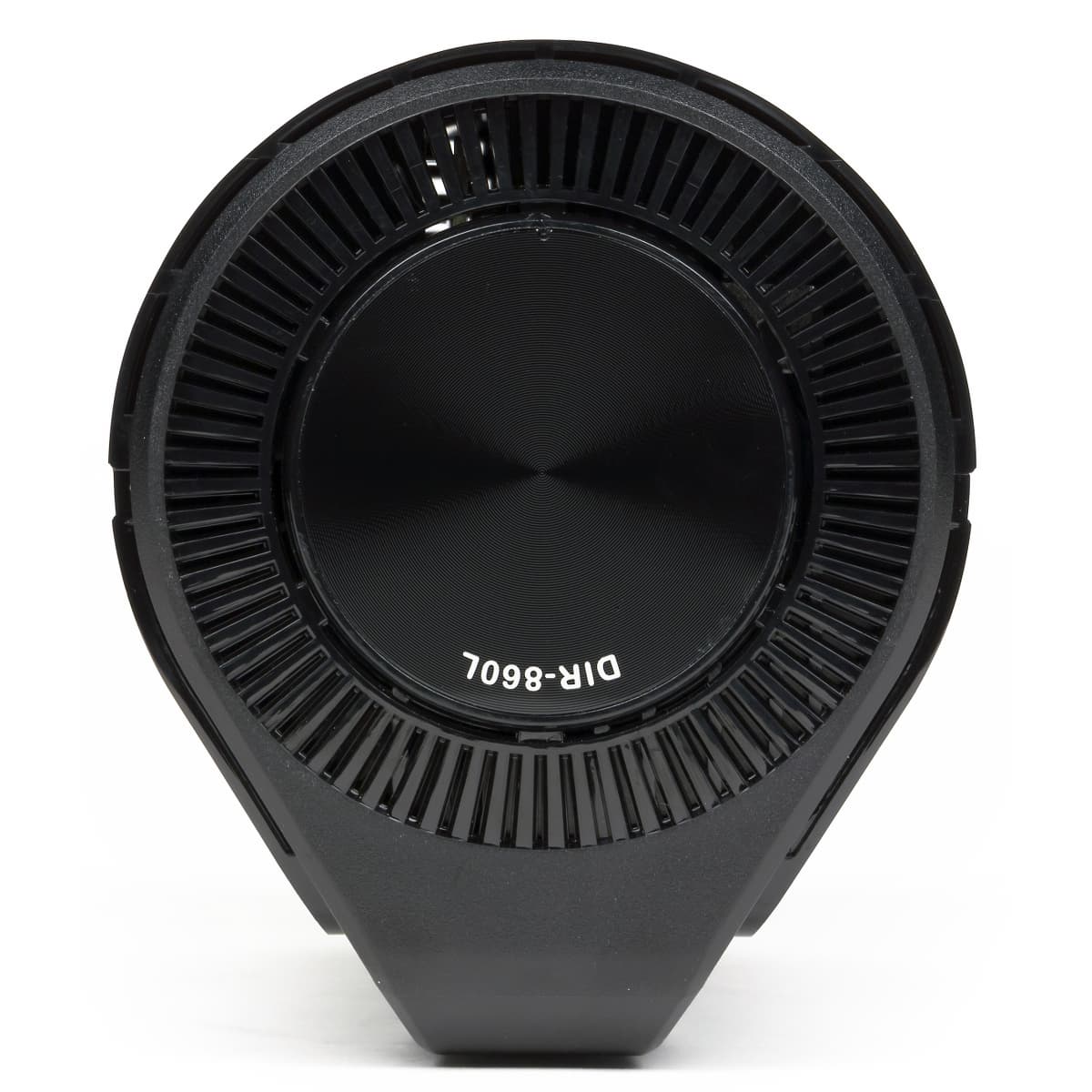 На верхнем торце мы видим решетку вентиляции, а вставка в центре имеет круговой узор. На ней же светлой краской указано название модели. Аналогичные решетки находятся и на дне устройства. Здесь же есть четыре невысокие резиновые ножки, отверстие скрытой кнопки сброса, табличка с информацией об устройстве (включая имена и пароли беспроводных сетей).