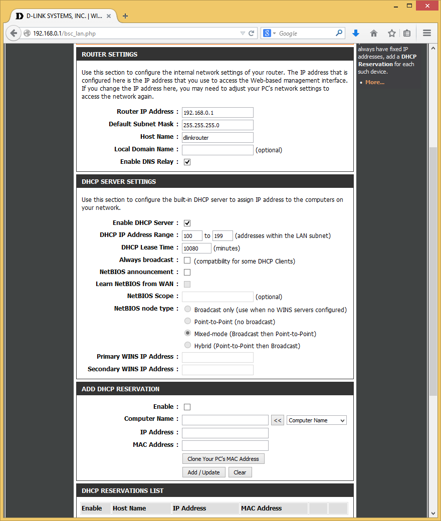 Клиенты в локальной сети, как обычно, могут использовать сервер DHCP. В его настройках можно выбрать диапазон адресов и назначить фиксированные соответствия MAC/IP.