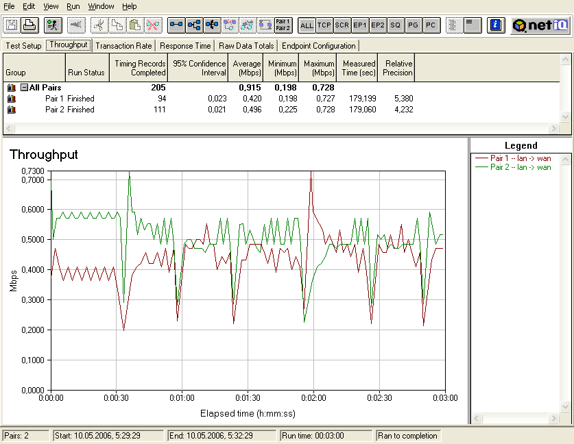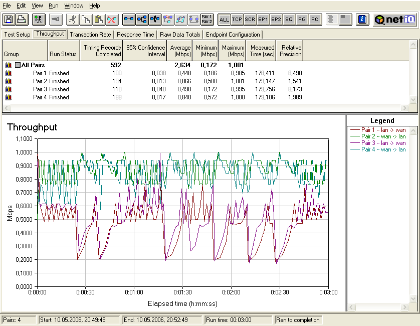 2 потока трафика в направлении LAN -> WAN при таких настройках (как в предыдущем абзаце) распределяются так