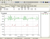 Как показывают графики, шейпинг трафика работает достаточно точно. В полнодуплексном режиме указанным значением (15000 кбит/с и 1000 кбит/с) ограничивается суммарный трафик (то есть сумма скоростей в обоих направлениях). Распределение скоростей в полнодуплексном режиме неравномерно: скорость в направлении LAN -> WAN в 1.5 — 2 раза ниже скорости в направлении WAN -> LAN.