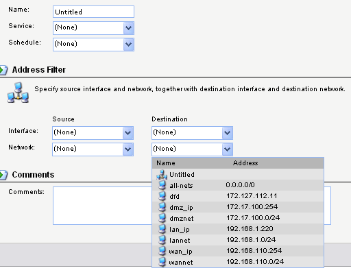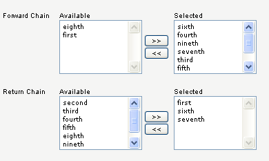 Задаются сразу 2 цепочки: Forward (для трафика) и Return (правила для соединений прошедших через цепочку Forward, трафик которых идет в обратном направлении).