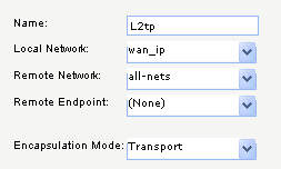 Туннель устанавливается в режиме "Transport" между WAN-интерфейсом роутера (Local Network: wan_ip) и клиентом.