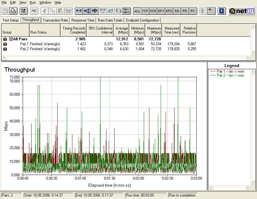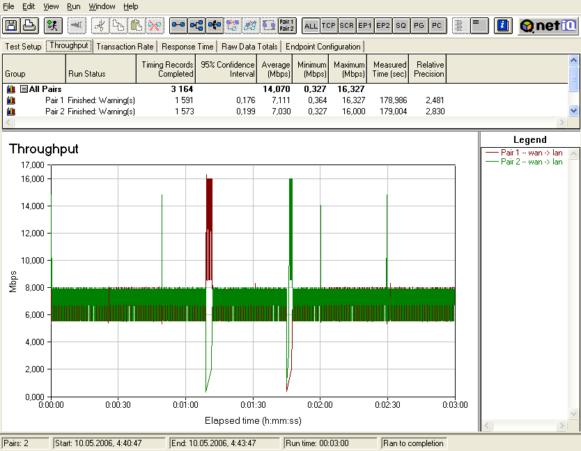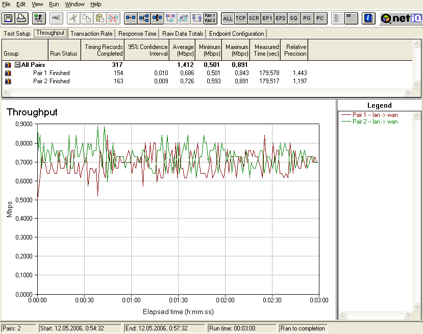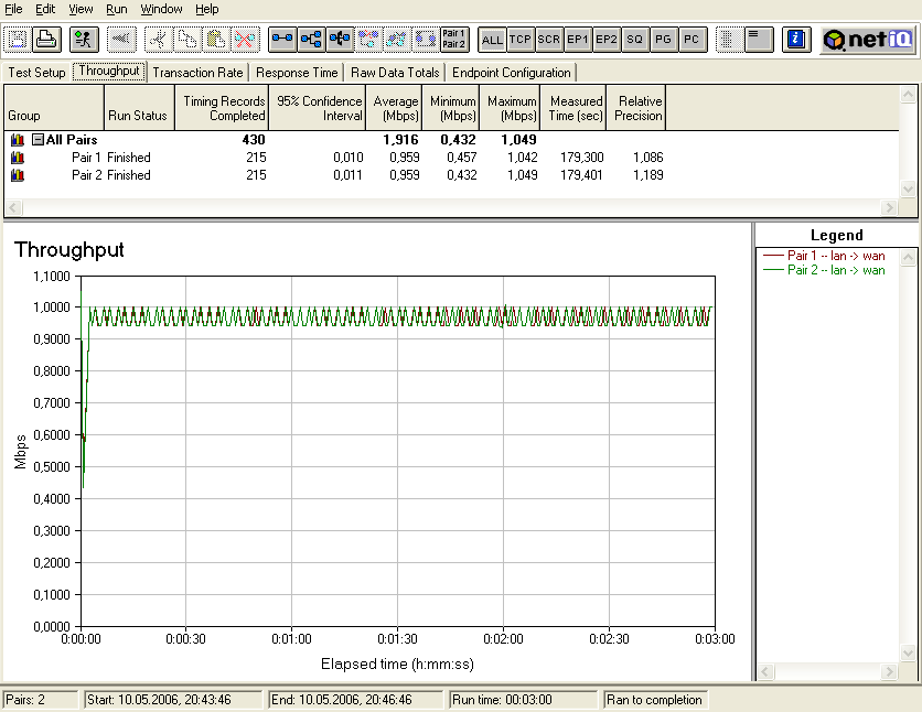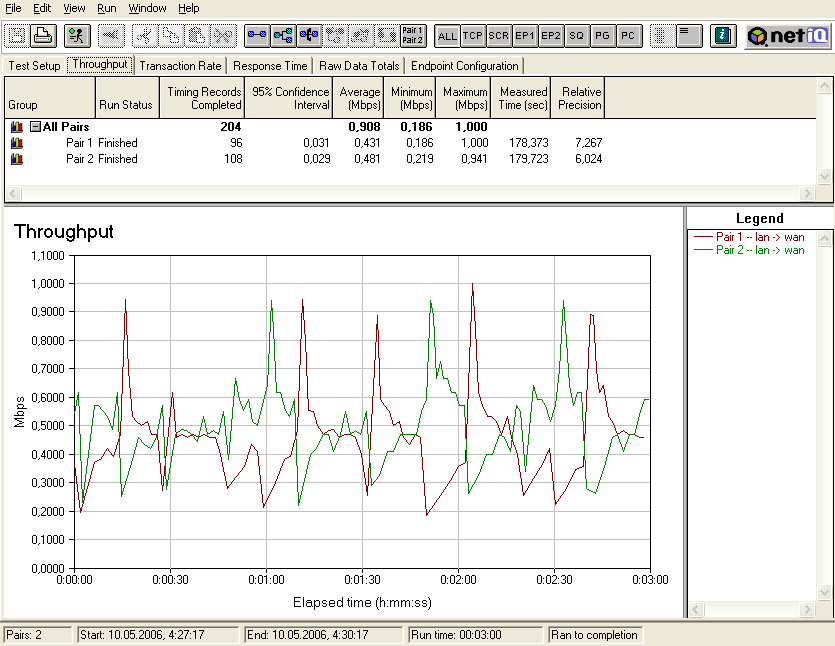Теперь изменим параметры правила так, чтобы в цепочках Forward и Return использовались различные каналы с одинаковыми значениями ширины полосы пропускания. По прежнему запускаются 2 потока трафика.