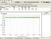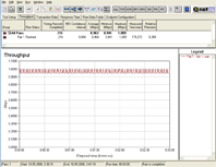 Теперь попробуем создать цепочку из нескольких каналов с различной шириной канала и применить их к потокам трафика. Для начала запустим 1 поток, чтобы увидеть как идет поток через различные каналы: когда поток идет через несколько каналов с различной шириной полосы пропускания, итоговая ширина канала должна равняться ширине меньшего из каналов