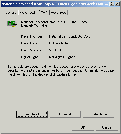 В ОС Linux прилагаемые драйвера не заработали. Точнее, исходники драйвера не собирались, поэтому использовался встроенный в ОС драйвер «National Semiconduct DP83820» версии 0.18. В этом драйвере размер Jumbo Frame лимитирован сверху числом 8192.