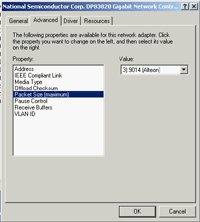 - 9000 байт (драйверы адаптеров Hardlink HA-32G и LG LNIC-1000T этот размер не поддерживали);