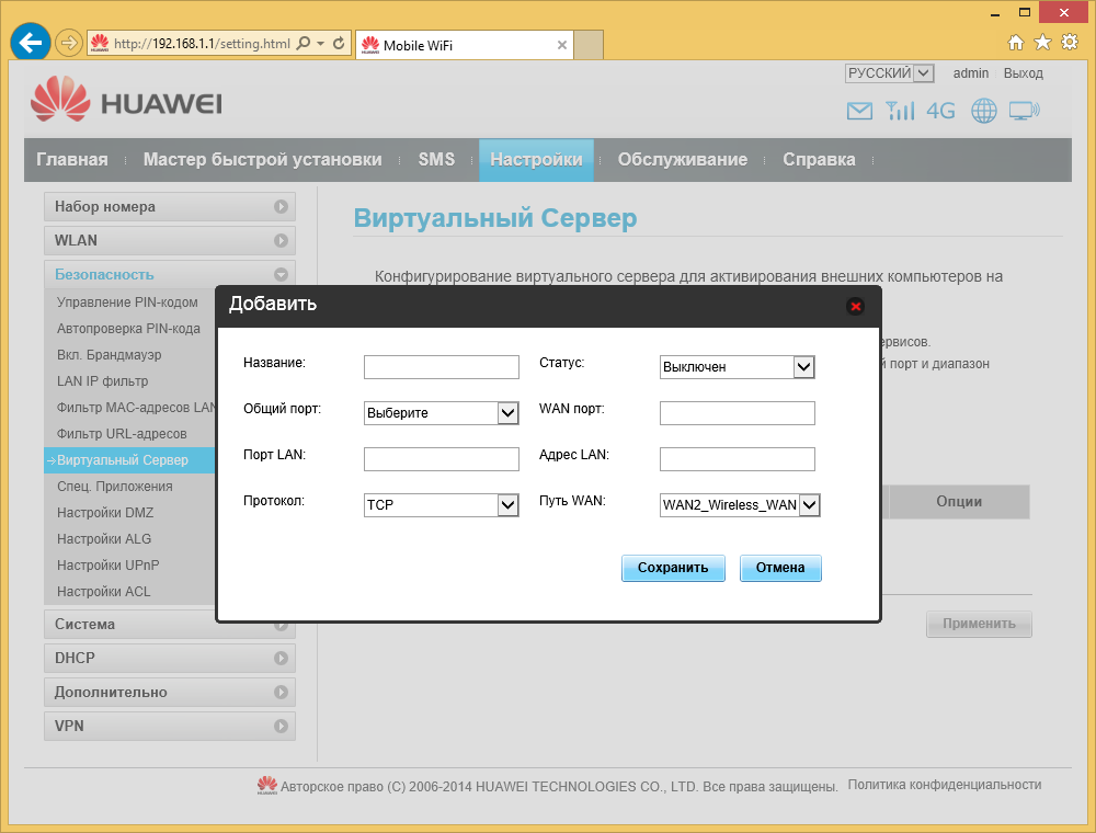 Отметим, что наличие двух портов для подключения к интернету отражается в настройках некоторых сервисов (например, в правилах трансляции портов), где появляется дополнительно поле выбора порта.