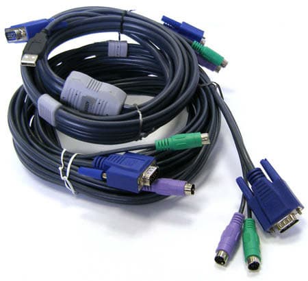- Кабели для подключения системных блоков доступны для заказа длиной 2 и 5 метров с интерфейсом PS/2 и USB (с активным конвертером)