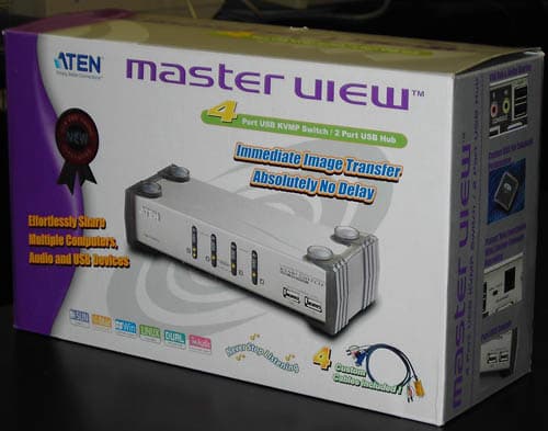 Продолговатая металлическая коробка, на лицевой стороне 4 кнопки для переключения каналов и 2 USB разъёма для клавиатуры и мыши. Остальные разъёмы для коммутации устройств находятся на задней панели. Кроме того там же гнездо для кабеля питания и перепрошивки ПЗУ, рядом с ним переключатель для перевода устройства в режим апгрейда (по ссылке картинка 114 КБ).