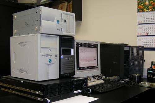 Состоял из монитора RoverScan Maxima 175 (MVA) со встроенным звуком, интегрированного звука на материнских платах, видеокарты Radeon 9000 Pro от Gigabyte, клавиатур Logitech Delux USB и Microsoft Natural Ergonomic Keyboard 4000 v1.0, мышей Microsoft IntelliMouse Explorer v1.0 и Logitech M-BD69 USB, простой с колёсиком. Ну и достаточно большого количества ПК и серверов под управлением Windows от 98SE через все промежуточные версии до Vista, и Linux, правда, без графического интерфейса.