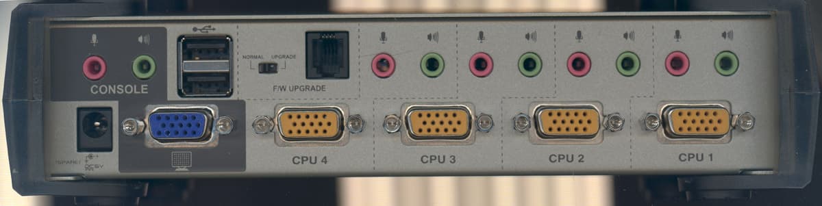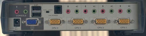 CS-1734a четырёхпортовый переключатель консоли, предназначенный для использования с клавиатурой и мышью с USB подключением и монитором и видеокартами с интерфейсом VGA. Кроме того, коммутируется USB хаб на 2 устройства и по 2 стереоканала звука на каждый системный блок. Фокус консоли, USB и звука переключается по разным ПК независимо друг от друга. В ассортименте предложений компании имеется аналогичный KVM на 2 системных блока. Теперь подробнее.