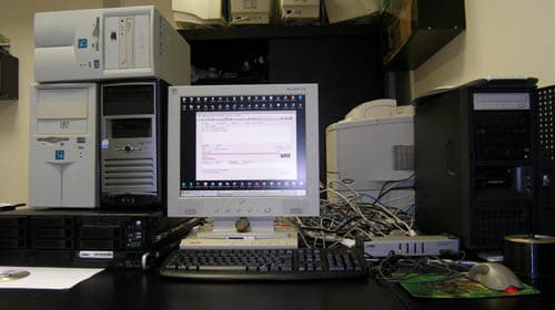 Состоял из монитора RoverScan Maxima 175 (MVA) со встроенным звуком, интегрированного звука на материнских платах, видеокарт Radeon 9000 Pro и GeForse 7600GT от Gigabyte, клавиатур Logitech Delux и Microsoft Natural Ergonomic Keyboard 4000 v1.0, мышей Microsoft IntelliMouse Explorer v1.0 и Logitech M-BD69 USB, простой с колёсиком. Ну и достаточно большого количества ПК и серверов под управлением Windows от 98SE через все промежуточные версии до Vista, и Linux, правда, без графического интерфейса.