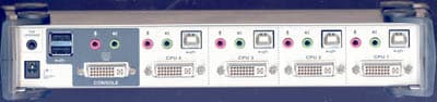 - Управление 4 компьютерами с помощью одного DVI монитора, мыши и клавиатуры с интерфейсом USB, независимое переключение USB хаба, стереоколонок и стереомикрофона
