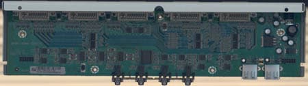 Остальные разъёмы для коммутации устройств находятся на задней панели. Кроме того там же гнездо для кабеля питания и перепрошивки ПЗУ (по ссылке картинка 130 КБ).