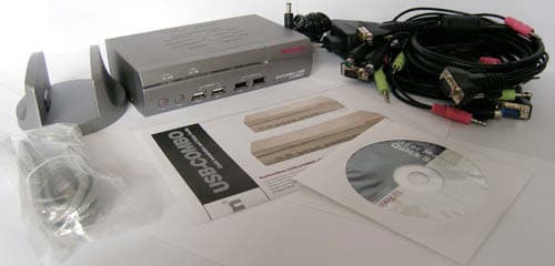 Продолговатая металлическая коробка, на пластиковой лицевой стороне две кнопки для переключения консоли и USB и четыре USB разъёма: два для клавиатуры и мыши и два для хаба. Остальные разъёмы для коммутации устройств находятся на задней панели. Кроме того, там вход для блока питания и нестандартное гнездо с подписью «Admin», нигде не документированное в рамках описания данной модели. По информации производителя, предназначено для сервисных функций, прежде всего для прошивки микропрограммы, кабель для подключения к последовательному порту ПК доступен как опция.