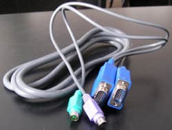 Кабели для подключения ПК содержат на стороне, подключаемой к KVM, стандартный разъём VGA (d-Sub), а на стороне ПК ещё два коннектора PS/2, отходящих от разъёма VGA. Длина «отростка» примерно 50 см, что, возможно, несколько избыточно. Таким образом, использование стандартных кабелей невозможно, придётся применять фирменные. Провода средней толщины, все сигналы «живут в одном доме». Звуковые каналы коммутируются отдельно спаренным стереокабелем, по два стандартных миниджека с каждой стороны.