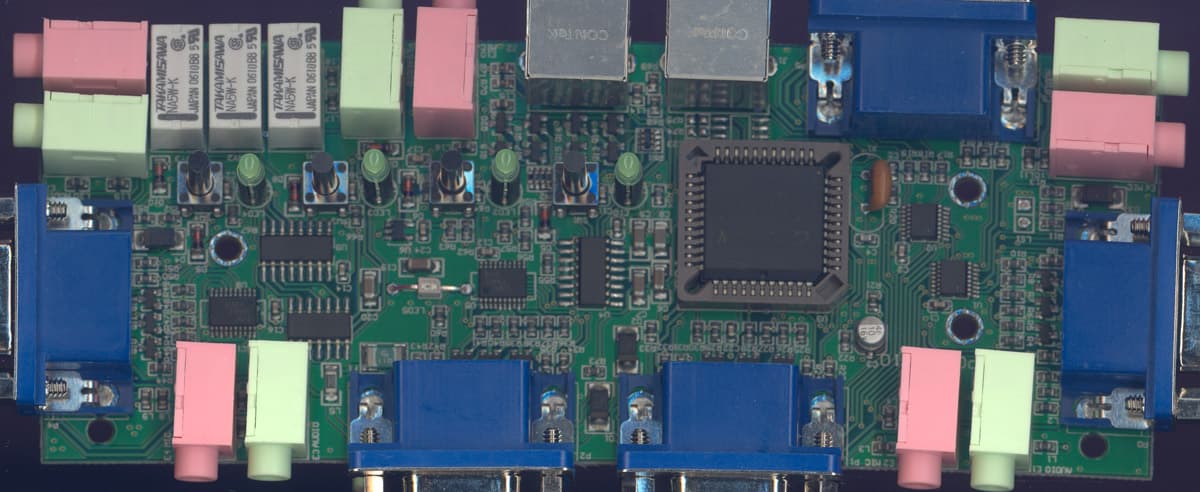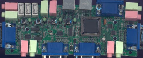 - Управление четырьмя компьютерами с помощью одного VGA-монитора, мыши и клавиатуры с интерфейсом PS/2, независимая коммутация двух стереоканалов