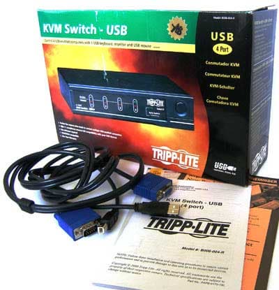 Сегодня рассмотрим модель начального уровня. B006-04-R четырёхпортовый переключатель консоли, предназначенный для использования с клавиатурой и мышью с USB подключением и монитором и видеокартами с интерфейсом VGA, оснащённый дополнительно хабом USB 1.1.