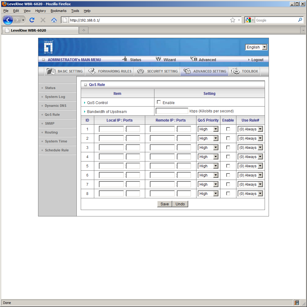 Управление трафиком по технологии QoS позволяет указать до восьми правил/фильтров, в каждом из которых указывается адреса и порты получателя и отправителя, один из трех уровней приоритета и расписание работы. Информации, приведенной в документации, недостаточно для понимания работы данной функции и проверки ее работы.