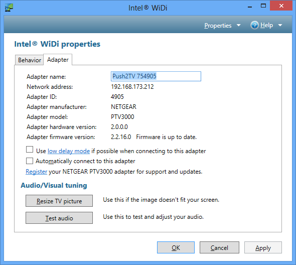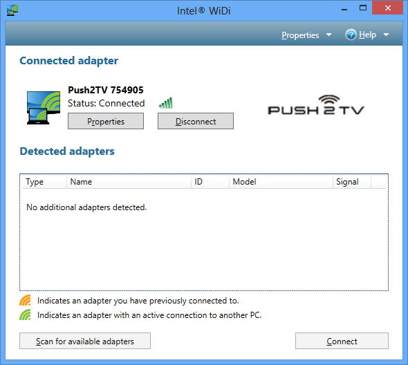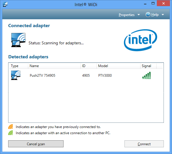 Технологии WiDi и Miracast можно считать надстройками над стандартным Wi-Fi 802.11n, что позволяет использовать те же беспроводные адаптеры, что и для обычного подключения к сети. С технической точки зрения, большинство сценариев использования этих стандартов будет работать в режиме без проводов. Однако если мы говорим про работу с телевизорами или проекторами, которые обычно стационарны, было бы интересно иметь возможность и проводного подключения приемника. Это будет сложнее с точки зрения установки связи (клиент должен будет предварительно подключаться к точке доступа), однако гораздо более привлекательно по параметрам дальности, скорости и стабильности соединения.