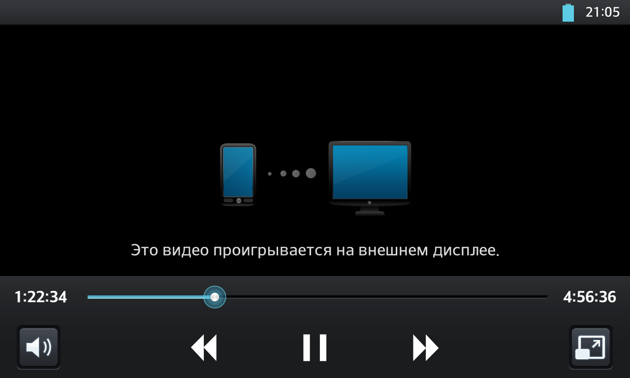 Сначала нам показалось, что Miracast, как и WiDi, просто сжимает отображаемую на экране устройства картинку и отправляет полученный поток по Wi-Fi на приемник. Об этом говорило в частности то, что на телевизоре полностью дублировалось изображение с телефона. Однако после некоторых манипуляций (перевод плеера в оконный режим и возврат на полный экран) видео с телефона пропадает и показывается только на приемнике в полный размер экрана. Значки управления могут появляться как на встроенном экране, так и на внешнем. Так что, видимо, не все так просто. Кстати, эффект аналогичен работе с внешним дисплеем по MHL. Кроме того, одновременно с трансляцией картинки можно записывать видео со встроенной камеры, поэтому для работы технологии используются четыре ядра Qualcomm Snapdragon S4, установленного в телефоне, или же есть еще какие-то специальные блоки в этой SoC. Отметим, что во время тестирования в некоторых режимах устройство заметно нагревалось и бывало даже запрещало повышать яркость собственного экрана с предупреждением о перегреве.