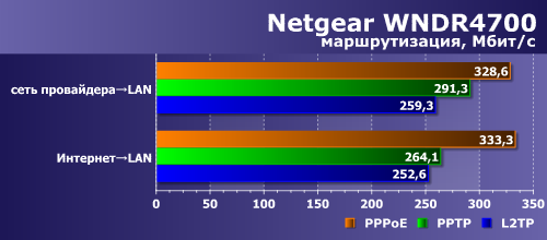 Формально результаты с IPoE получились не самые высокие. Результаты PPPoE соответствуют цифрам, показанным одним из топовых устройств другого производителя. А вот по PPTP и L2TP рассматриваемая модель является сегодня лидером. Правда, надо отметить, что для пользователей каналов 100 Мбит/с все это не очень существенно. Устройств, которые способны обеспечить полную скорость в любом режиме, на рынке достаточно много. Конечно, можно попробовать сказать, что лишней производительности не бывает, но в данной модели не так уж много функций, где она может быть востребована.