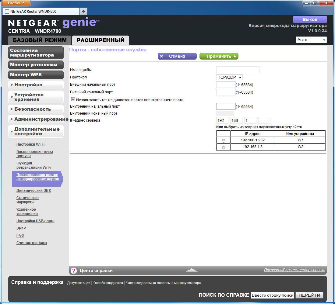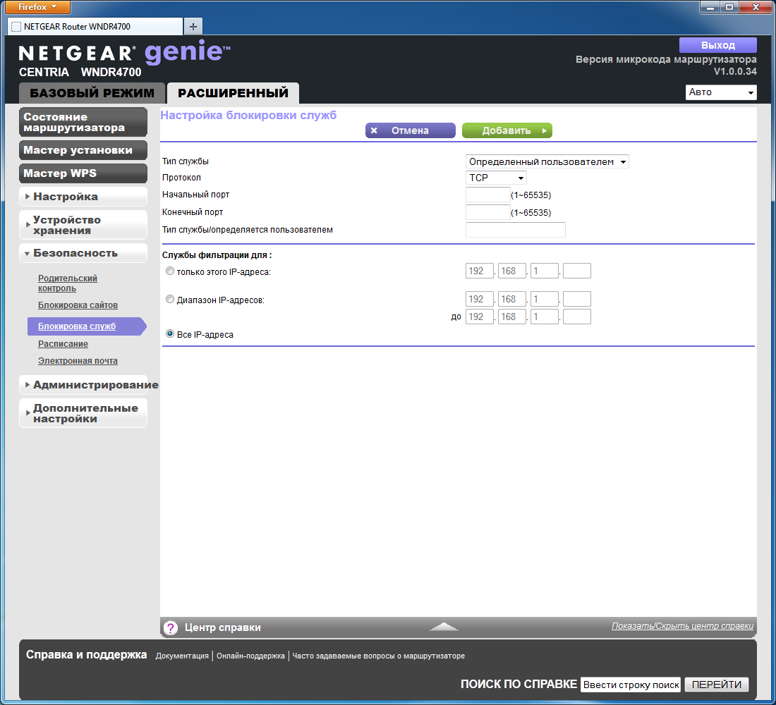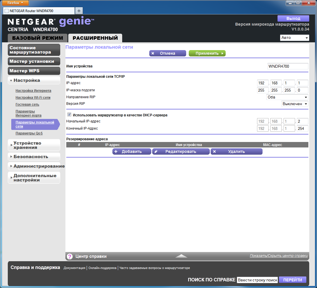 В устройстве используется прошивка серии Netgear Genie, уже знакомая нам по тестированию некоторых прошлых моделей. Она имеет переводы на несколько языков, включая русский, и встроенную справочную систему. Доступ к web-интерфейсу возможен как по обычному протоколу http, так и по шифрованному https. Есть опция для разрешения управления через интернет — в ней можно ограничить IP-адреса допустимых систем и изменить номер порта.