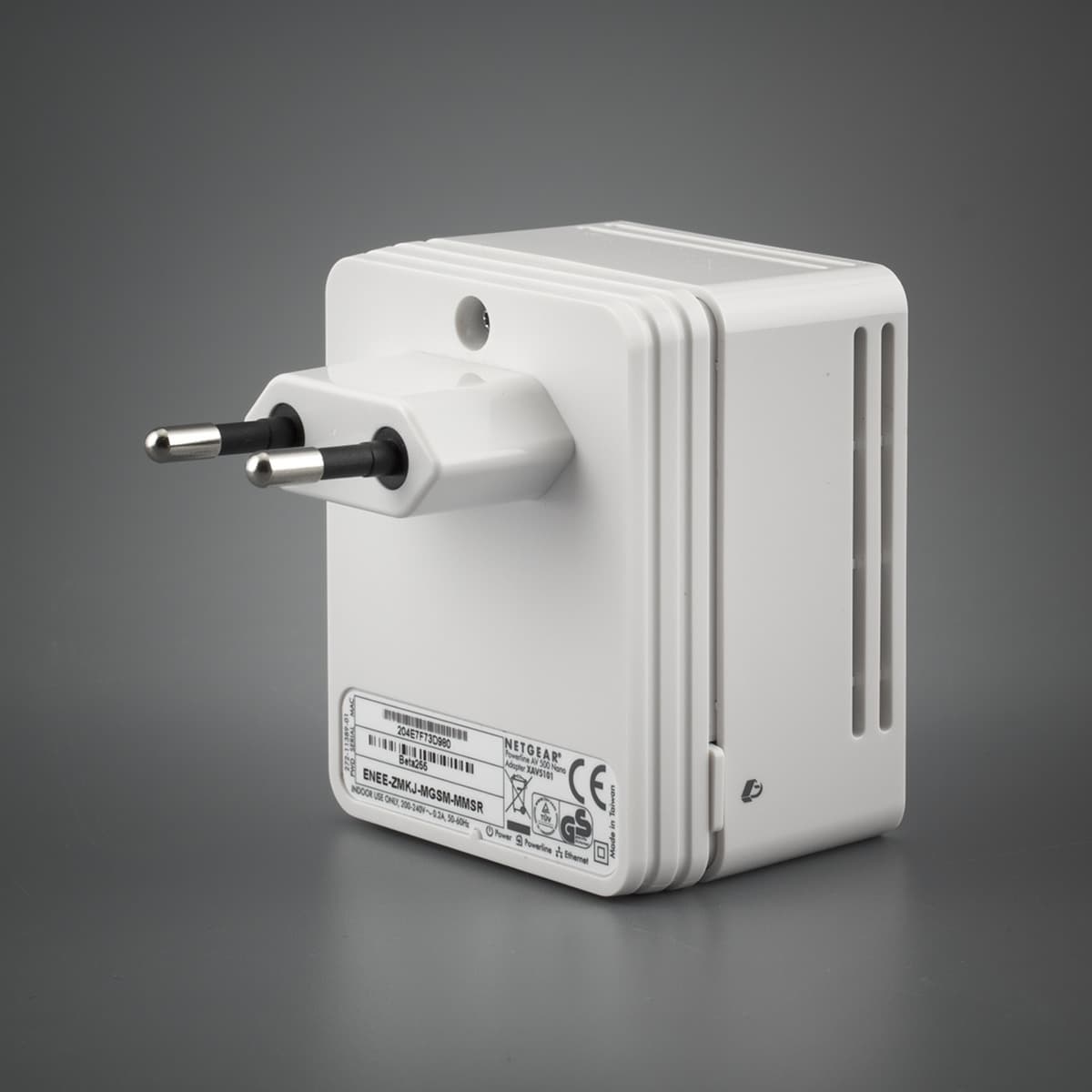 Корпус изготовлен из белого глянцевого пластика. По всему контуру размещены решетки пассивной вентиляции. На лицевой стороне расположены три светодиода — питание, подключение и активность сети Ethernet, статус сегмента Powerline. По цвету последнего можно быстро определить качество связи. На одной из боковых сторон находится кнопка для быстрой синхронизации ключа шифрования, а с другой стороны — скрытая кнопка сброса.