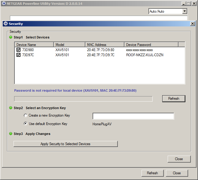 Для установки ключа и некоторых других параметров используется специальная утилита, которая есть в версиях для Windows и Mac OS. Компьютер, на котором она запускается, должен быть подключен кабелем в тот сегмент локальной сети, где есть хотя бы одно устройство HomePlug.