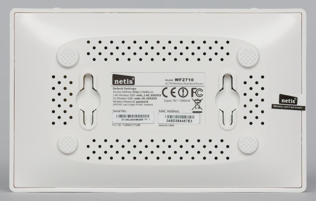 На дне есть отверстия пассивной системы вентиляции корпуса, четыре пластиковые ножки и элементы специальной формы для крепления роутера на стену.